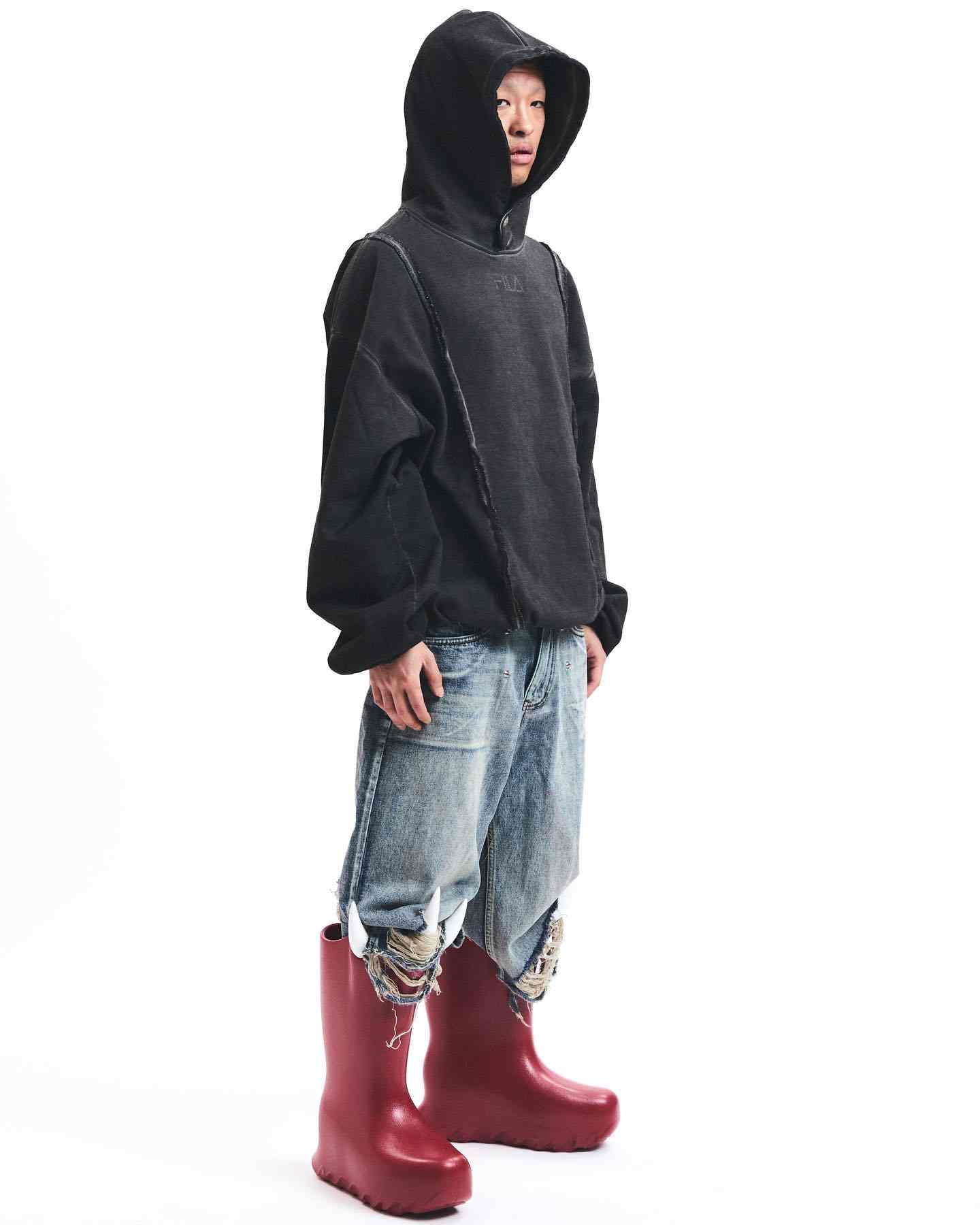 2021 年才成立的 JUNTAE KIM,能够迅速获得不俗的关注量与人气,正是得益于其在时装立体结构和跨次元般意境层面的独特设计理念;此番颇为出圈的合作,这一美学语言在主流鞋款上得到再度诠释,也足可见 Salomon 对其给予了极大程度的创作自由。